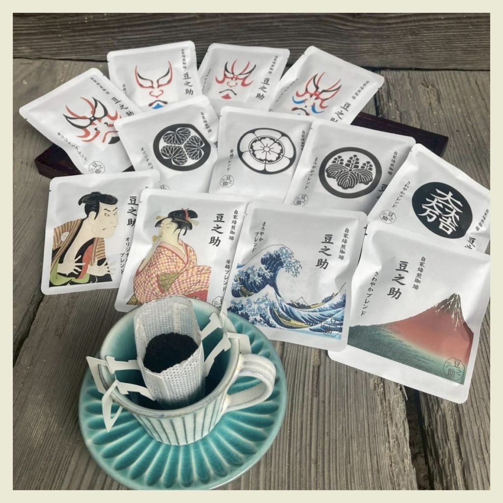和柄と縁起物にこだわってデザインされたドリップコーヒーが人気のcoffee beans 豆之助は、「安心して飲める、安全で美味しいコーヒー」を提供しています。焙煎前には洗浄・蒸す・寝かすの工程を経て、人には優しく、豆のポテンシャルは最大限に引き出してから焙煎します。満月と新月の日に自家焙煎するというこだわりを持ち、そんな豆之助のコーヒーは飲む人の潜在意識を呼び起こし、開運のお手伝いをいたします。ワンランク上の癒しの時間を楽しみください。