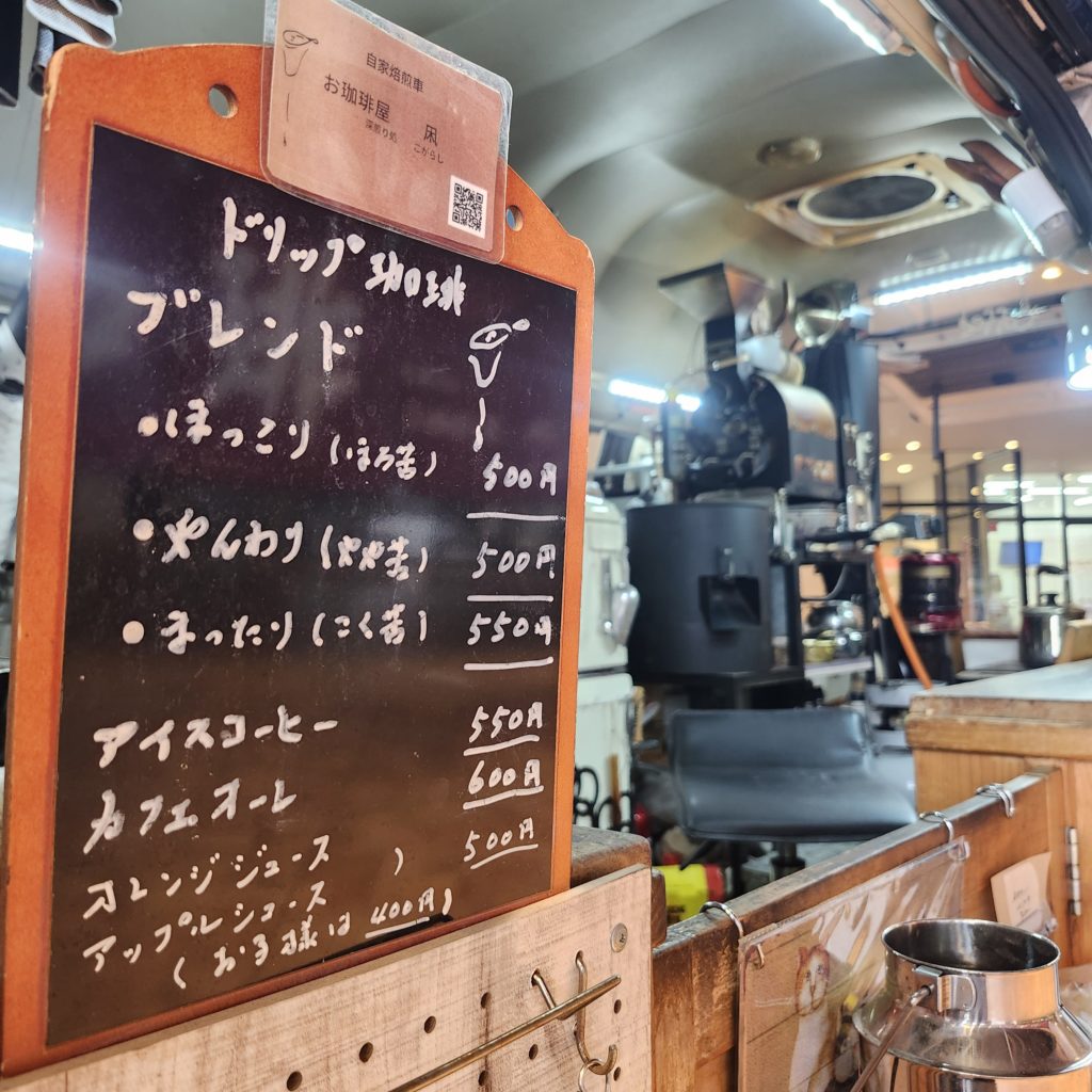 キッチンカーで自家焙煎した珈琲豆とドリップ珈琲の販売をしております。