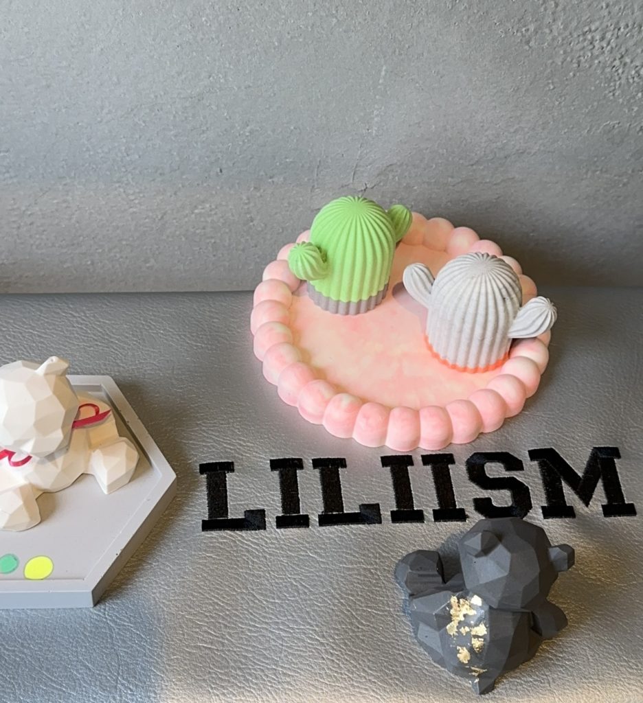 人体と環境に優しいVOC・有機溶剤フリーのジェスモナイトという素材を使いインテリア雑貨を作成したり