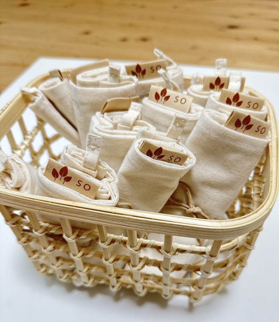 古くから使われてきた日本のサラシを見直して、繰り返し使えるプロデュースバッグとして広めていきたいと日々奮闘中です。