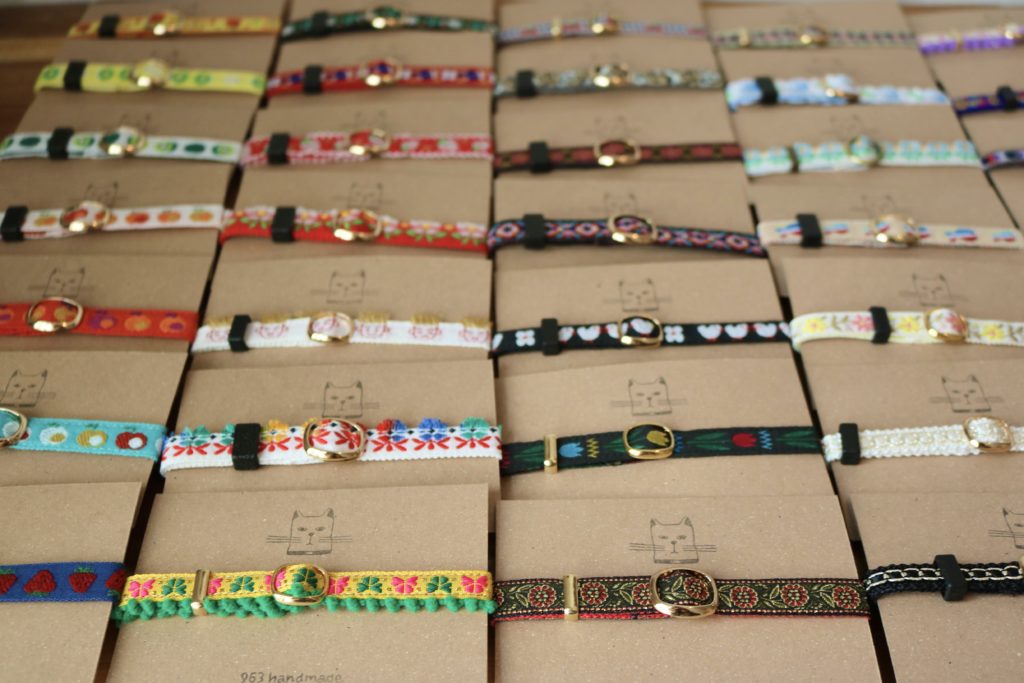 様々な国のチロリアンテープやレースリボン、ブレードで、猫用の首輪を作っております。