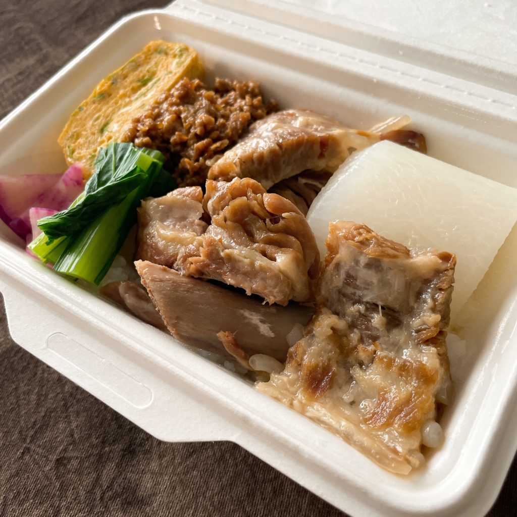 「鶏飯」は7種類の具材(錦糸卵・鶏肉を割いたもの・干し椎茸の甘煮・ネギ・パパイヤの漬物・海苔・柑橘の皮)をのせたご飯に鶏ガラスープをかけて食べる料理です。