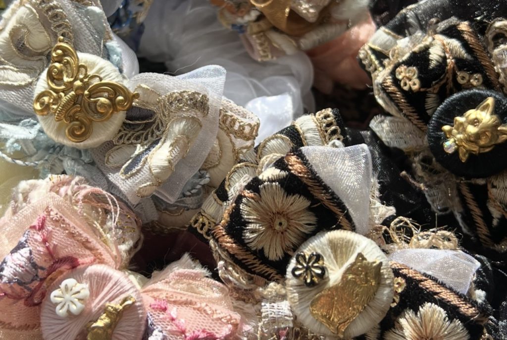 インド刺繍リボンを贅沢に使用して内布にもウィリアムモリスの生地を使用し、どの角度から見てもドキドキわ